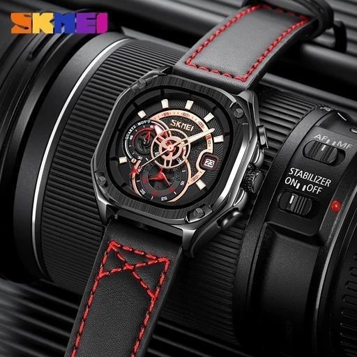 موتور فعال بند چرم قفل استیل عقربه ها شب تاب قطر صفحه ۴۴ میلیمتر جنس بدنه آلیاژ روی Zinc ضد حساسیت ضدآب 3ATM تقویم کورنومتر
