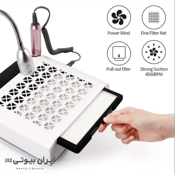 نام دستگاه: دستگاه مانیکور و پدیکور – سوهان ناخن برقی – گردگیر و فن زیر دست